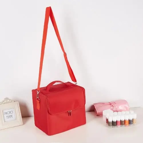 Επαγγελματική Τσάντα Οργάνωσης Καλλυντικών Με Αδιάβροχο Ύφασμα & Ιμάντα Ώμου – Κόκκινη