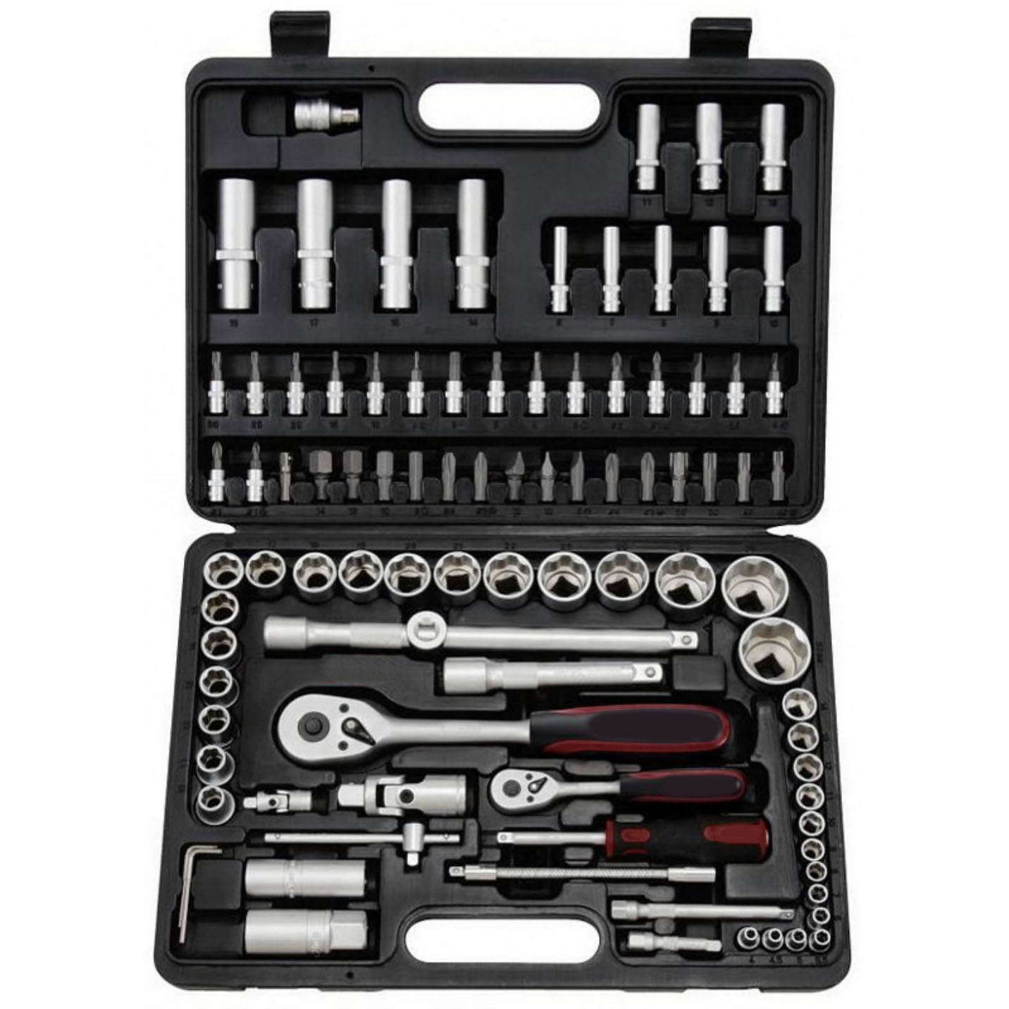 Plastic case with 94 pcs chrome vanadium tools:
