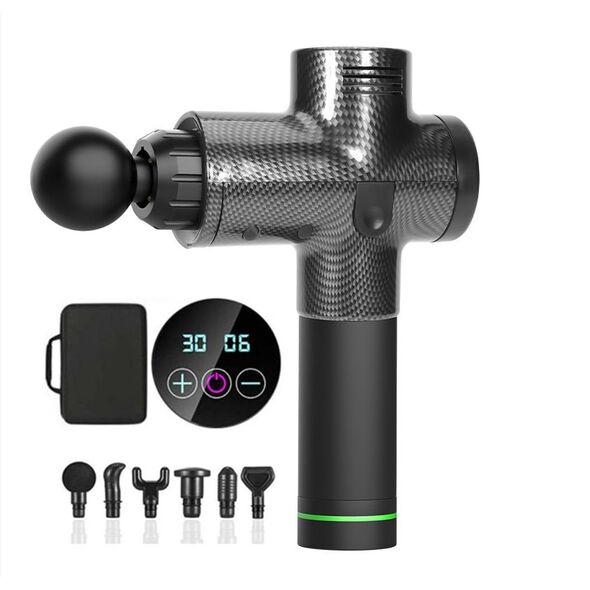 Επαγγελματική Συσκευή Αθλητικού Μασάζ Δονήσεων Ανάκαμψης & Αποκατάστασης με 6 Κεφαλές, 30 Ταχύτητες & Οθόνη Αφής - Fascial Gun Carbon