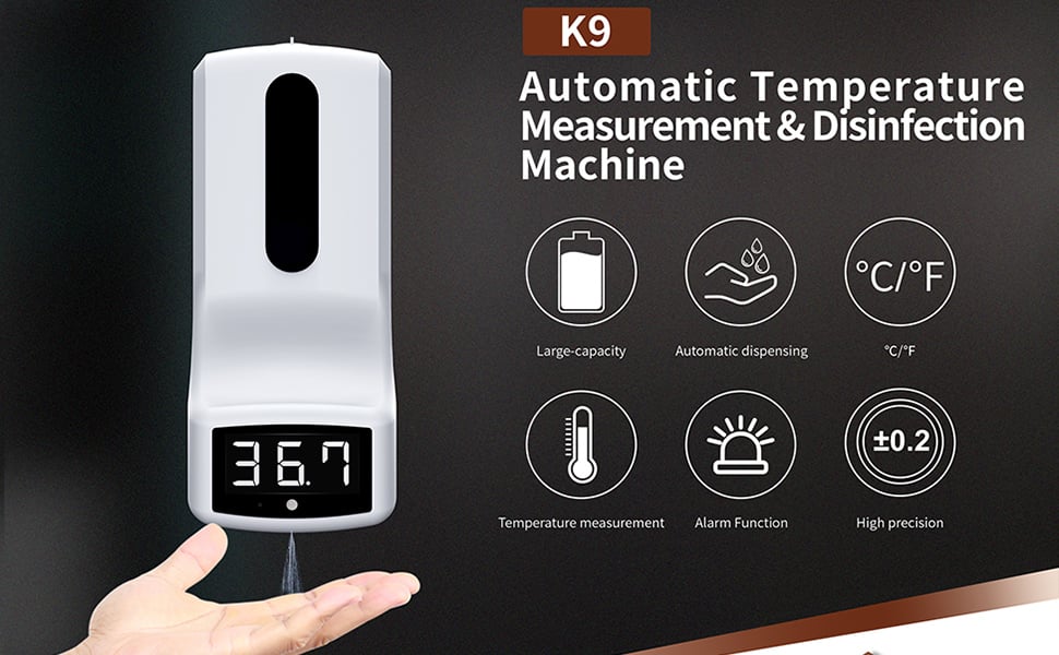 Επαγγελματικό Ανέπαφο Θερμόμετρο Υπερύθρων Διανεμητής Αντισηπτικού, για Πολυσύχναστους Χώρους Ψηφιακό με Laser