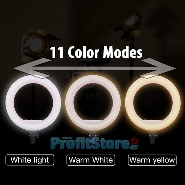 Επαγγελματικό Ασύρματο Τηλεχειριζόμενο Φωτογραφικό Φωτιστικό Δαχτυλίδι 32cm Ring Lamp LED Light με 11 Χρώματα Φωτισμού, 11 Dimmer, Μεγάλο Τρίποδο & Βάση για Κάμερα ή Κινητό