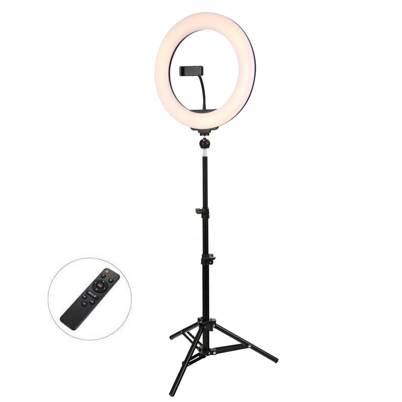 Επαγγελματικό Ασύρματο Τηλεχειριζόμενο Φωτογραφικό Φωτιστικό Δαχτυλίδι 35cm Ring Lamp LED Light με 11 Χρώματα Φωτισμού, 10 Dimmer, Μεγάλο Τρίποδο & Βάση για Κινητό