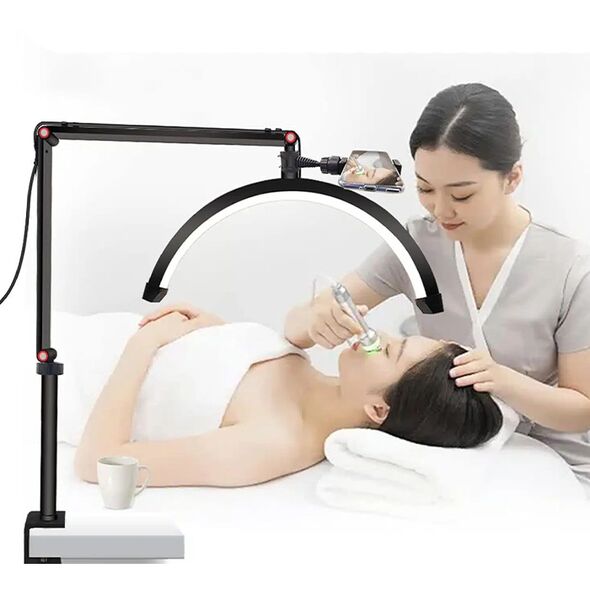 Επαγγελματικό Επιτραπέζιο Φωτιστικό Μισοφέγγαρο Επεκτεινόμενο με Δυνατότητα Περιστροφής 360°, Ρυθμιζόμενη Θερμοκρασία Χρώματος και