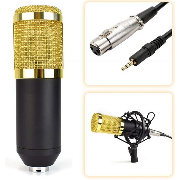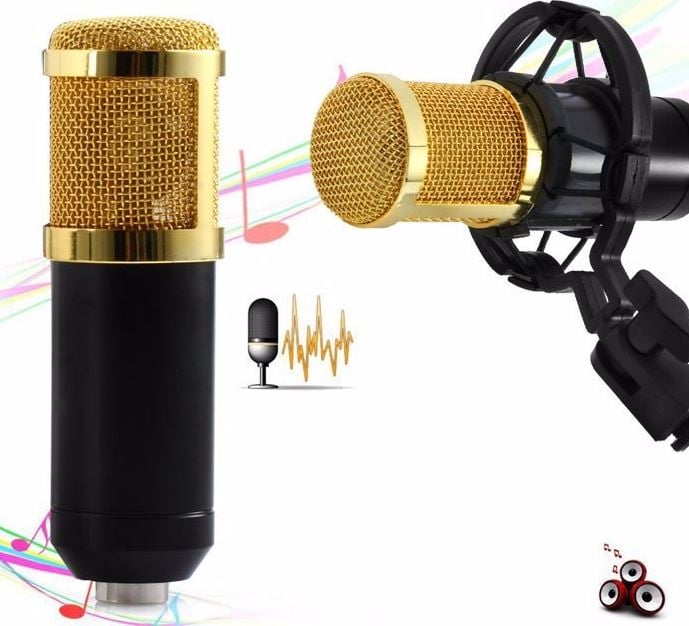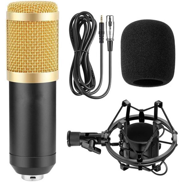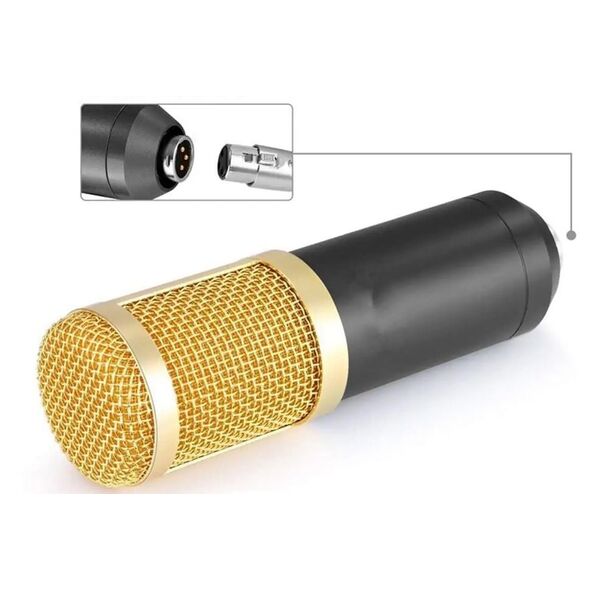 - 1 x Επαγγελματικό Πυκνωτικό Μικρόφωνο με Αντικραδασμική Βάση - Ενσύρματο - Μαύρο & Χρυσό - 16cm