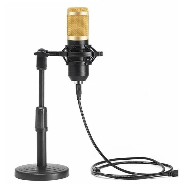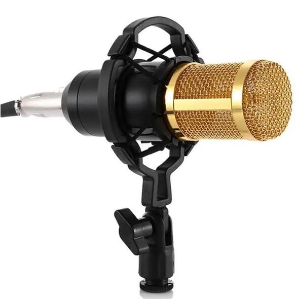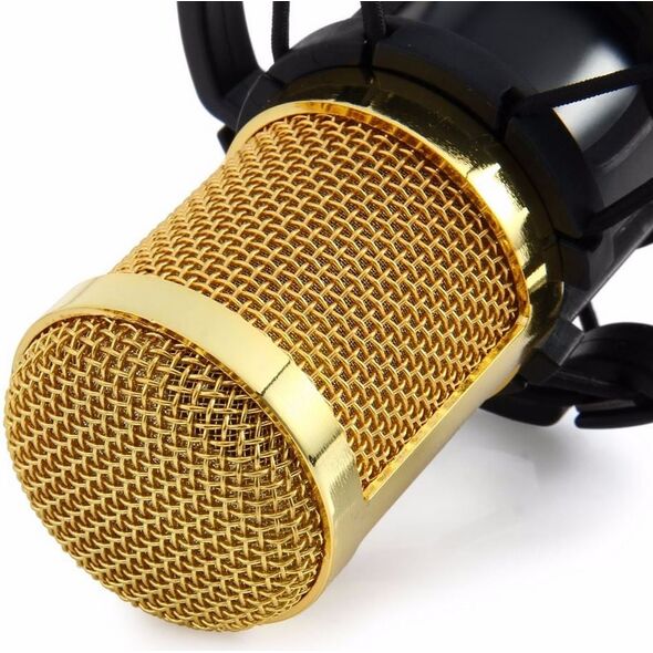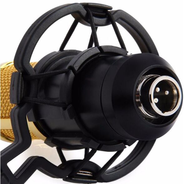 Επαγγελματικό Πυκνωτικό Μικρόφωνο με Αντικραδασμική Βάση - Ενσύρματο - Μαύρο & Χρυσό - 16cm