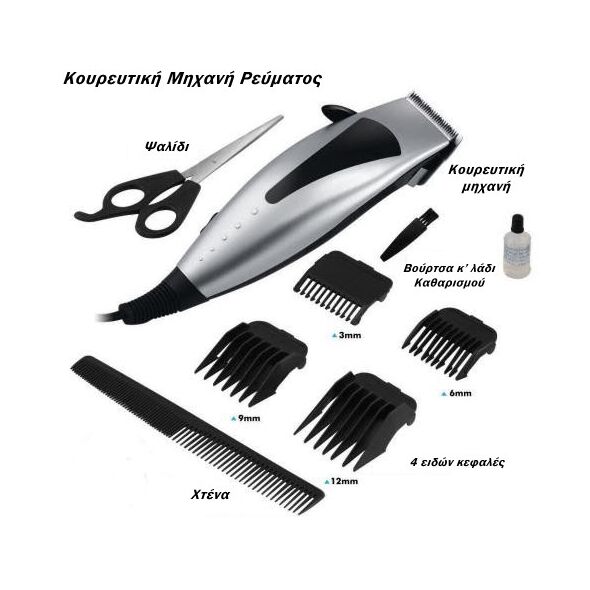 Επαγγελματικό Σετ Kουρευτικής Μηχανής Ρεύματος με Ψαλίδι και Χτένα