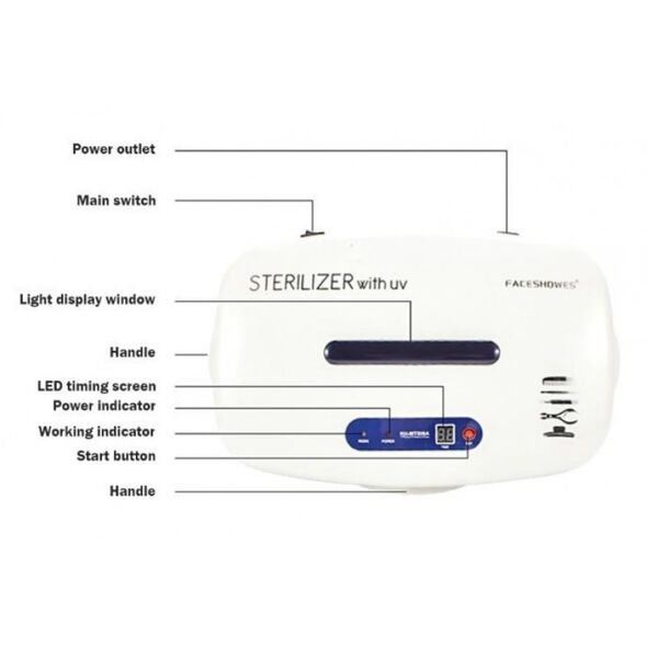 Με ενσωματωμένη λάμπα UV υπεριώδους ακτινοβολίας, ο επαγγελματικός αποστειρωτής θα καταστρέψει γρήγορα κάθε μικροοργανισμό, διευκολύνοντας την αποστείρωση διαφόρων τύπων εργαλείων. Ιδανικός για κομμωτές, αισθητικούς, μανικιουρίστες κα