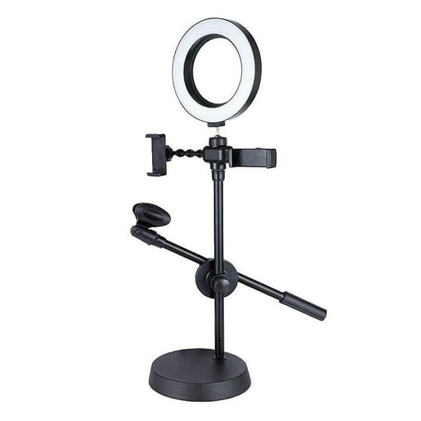 Το Ring Light LED με Bάσεις για Kινητό & Mικρόφωνο αποτελείται από Ring Light με LED λαμπτήρες για χαμηλή κατανάλωση και 3 διαφορετικές θερμοκρασίες χρώματος για να δημιουργήσετε την ατμόσφαιρα που επιθυμείτε, 2 βάσεις για Smartphone ώστε να δημιουργείτε περιεχόμενο για διαφορετικές πλατφόρμες ταυτόχρονα και μία βάση μικροφώνου ώστε να εξασφαλίζετε καθαρό επαγγελματικό ήχο.