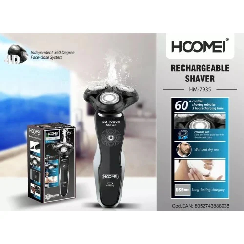 ✔️ Άνετο ξύρισμα με 3 κεφαλές: Η ξυριστική μηχανή Hoomei 4D προσφέρει άνετο και ακριβές ξύρισμα χάρη στις τρεις αιωρούμενες κεφαλές που προσαρμόζονται στις γωνίες του προσώπου.