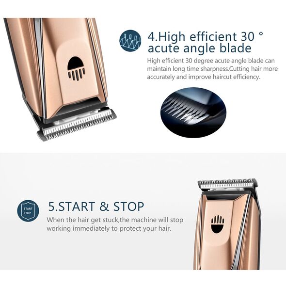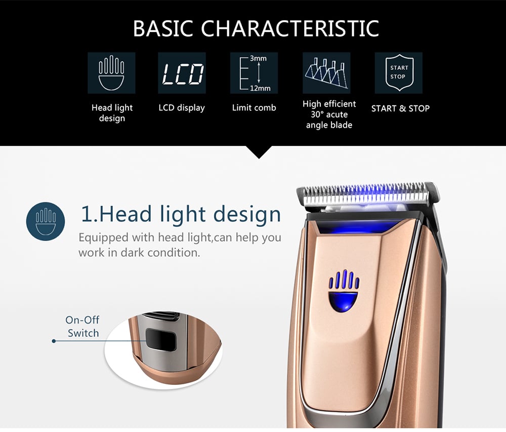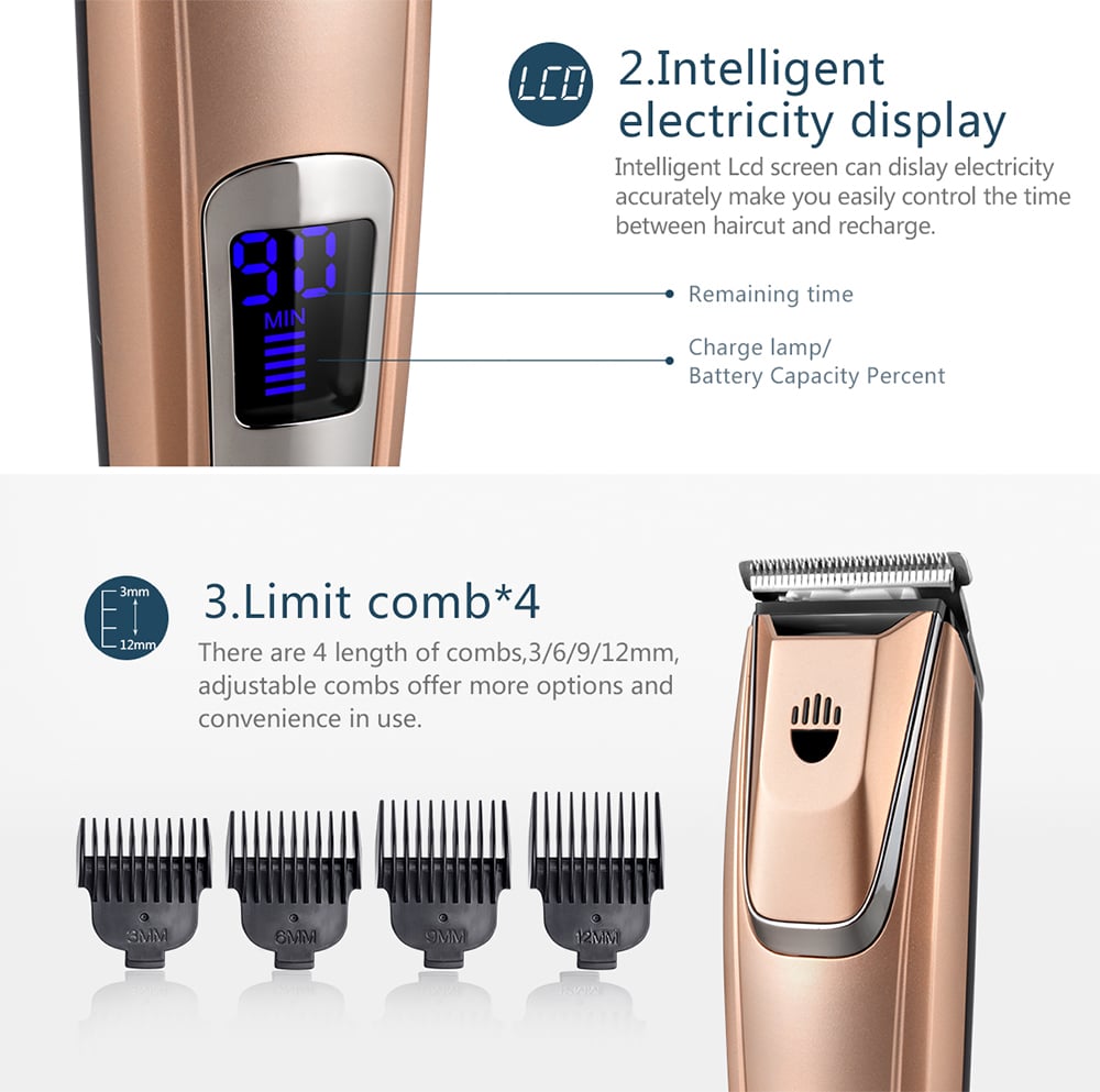 Η Kemei Professional Hair Clipper KM-PG102 διαθέτει εξαιρετικά κοφτερές λεπίδες τιτανίου και κινητήρα υψηλής ταχύτητας. Έρχεται με τέσσερις κεφαλές κοπής για ρυθμιζόμενο τέλειο μάκρος, απλά συνδέστε το ένα πάνω στο ψαλίδι και κόψτε τα μαλλιά στο επιθυμητό σας μήκος. Οι υπέρ-λεπτές κεφαλές με ειδικές σχισμές ξυρίζουν τα πιο κοντά γένια.