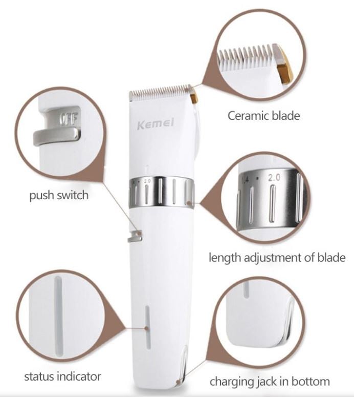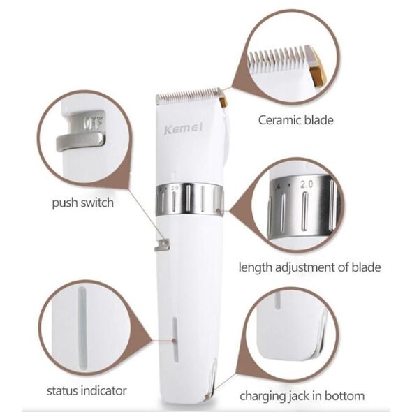 Η επαναφορτιζόμενη κουρευτική μηχανή Kemei KM-1029 με ενσωματωμένη επαναφορτιζόμενη μπαταρία, 5 χτενάκια και λεπίδες τιτανίου που δε σκουριάζουν, είναι το απόλυτο κιτ περιποίησης για τα μαλλιά και τα μούσια του άντρα. Χωρίς καλώδιο για 100% ευελιξία και ευκολία στον χειρισμό!
