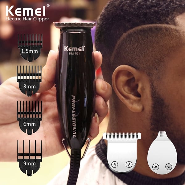 Η επαναφορτιζόμενη κουρευτική μηχανή Kemei KM-701 σας επιτρέπει να κόβετε εύκολα τα μαλλιά σας και είναι μια ολοκληρωμένη λύση, για την περιποίηση των μαλλιών και του προσώπου καθώς σας προσφέρει μια εξαιρετική εμπειρία ξυρίσματος. Είναι εξοπλισμένη με ανοξείδωτη λεπίδα που γλιστράει ομαλά στο δέρμα σας. Η λεπίδα προσαρμόζεται σε κάθε καμπύλη του προσώπου και του λαιμού σας. Ο εργονομικός σχεδιασμός της παρέχει την πιό άνετη εμπειρία χρήσης, ενώ σας παρέχει την δυνατότητα να ρυθμίσετε το μήκος κοψίματος που επιθυμείτε. Διαθέτει επαναφορτιζόμενη μπαταρία και σίγαση σχεδιασμού με αποτέλεσμα ο θόρυβος της να είναι χαμηλότερος από παρόμοια προϊόντα. Είναι φιλικό προς το δέρμα, υψηλής απόδοσης, με λεπίδα που δεν θα σκουριάσει ούτε θα μπλέξει στα μαλλιά σας, η οποία διατηρείται πάντα αιχμηρή και εξασφαλίζει υψηλή αντοχή και αποτελεσματικότητα.