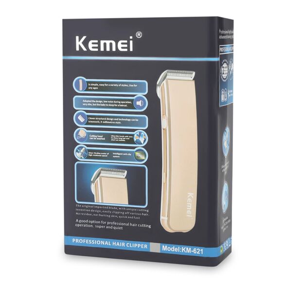 Η Kemei  KM-621διαθέτει εξαιρετικά κοφτερές λεπίδες τιτανίου και κινητήρα υψηλής ταχύτητας. Έρχεται με δύο κεφαλές κοπής για ρυθμιζόμενο τέλειο μάκρος, απλά συνδέστε το ένα πάνω στο ψαλίδι και κόψτε τα μαλλιά στο επιθυμητό σας μήκος. Οι υπέρ-λεπτές κεφαλές με ειδικές σχισμές ξυρίζουν τα πιο κοντά γένια. Ιδανική για τριμάρισμα, με εργονομικό σχεδιασμό περιστροφής για μετακίνηση της λεπίδας.