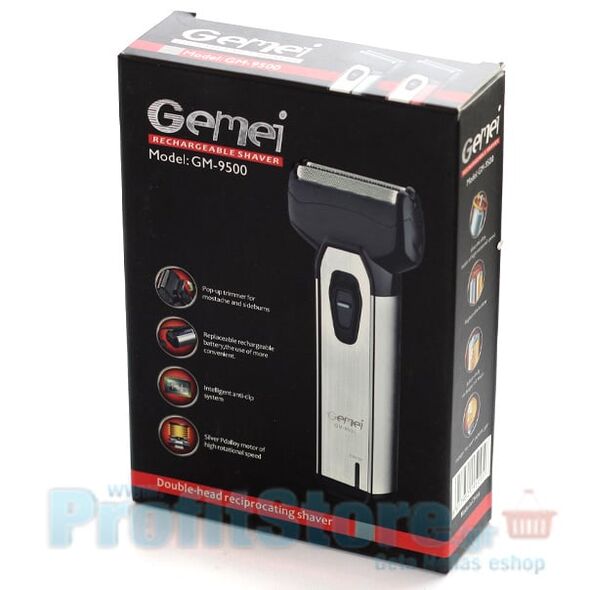 Επαναφορτιζόμενη Ξυριστική Μηχανή 2 ανεξάρτητων, παλινδρομικών κεφαλών Gemei 9500