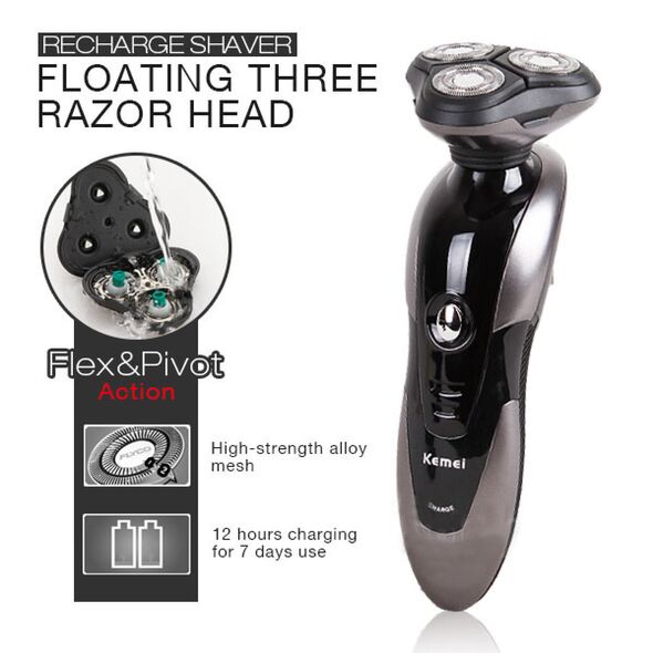 Επαναφορτιζόμενη Ξυριστική Μηχανή 3 Κεφαλών 3D Floating Kemei RSCX-9006