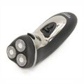 Επαναφορτιζόμενη ξυριστική μηχανή με επαναστατικό σύστημα τριών κεφαλών που αγκαλιάζουν το πρόσωπο για βαθύ και αποτελεσματικό ξύρισμα χωρίς ερεθισμούς.
