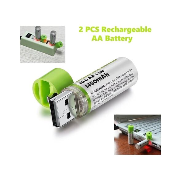 Επαναφορτιζόμενη Μπαταρία NH Με Βύσμα Usb AA 1450mAh