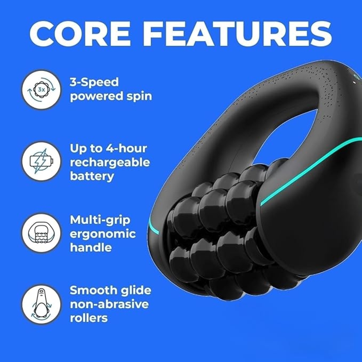 Ο εργονομικός σχεδιασμός με λαβή πολλαπλών θέσεων εξασφαλίζει άνετο κράτημα και άριστο έλεγχο, διευκολύνοντας τη χρήση σε διάφορες μυϊκές ομάδες όπως ώμοι, πλάτη, χέρια, πόδια, γάμπες και μηροί.