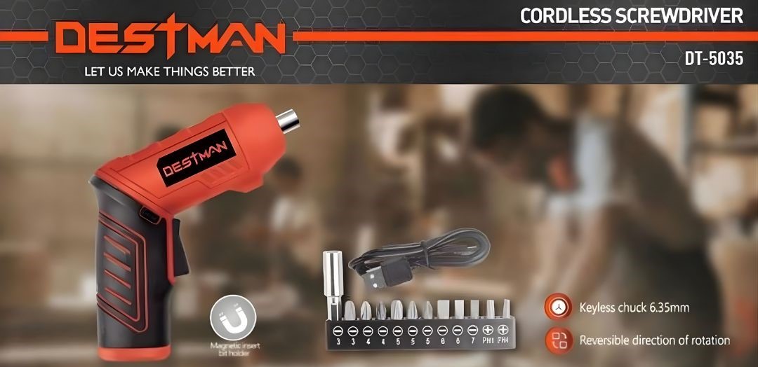 Το επαναφορτιζόμενο ασύρματο κατσαβίδι Destman 4V προσφέρει άνεση και ευκολία σε καθημερινές εργασίες συναρμολόγησης και επισκευής, χάρη στην εργονομική λαβή και τον ελαφρύ σχεδιασμό του.