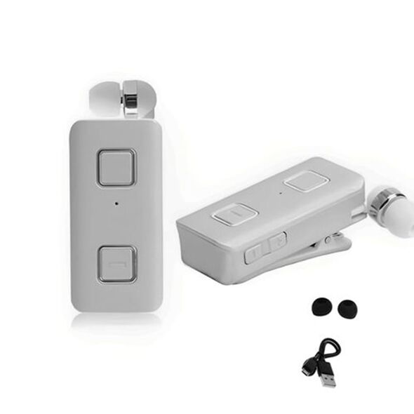Επαναφορτιζόμενο HandsFree Ακουστικό Bluetooth Πέτου με Δόνηση & Ενσωματωμένο μικρόφωνο, Ανασυρόμενο Ακουστικό Clip Ασημί