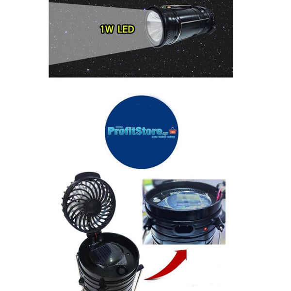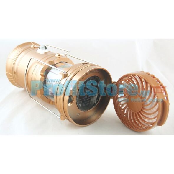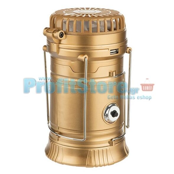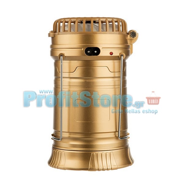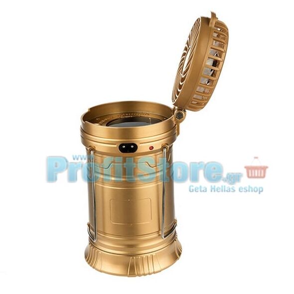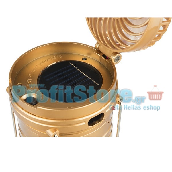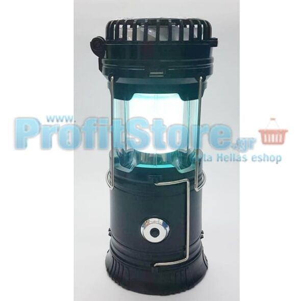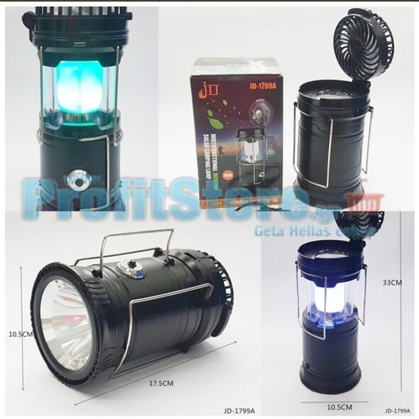 Επαναφορτιζόμενο Πτυσσόμενο Ηλιακό Φανάρι & Φακός με Ανεμιστήρα Camping Led 1W+6LED & PowerBank JD-1799A