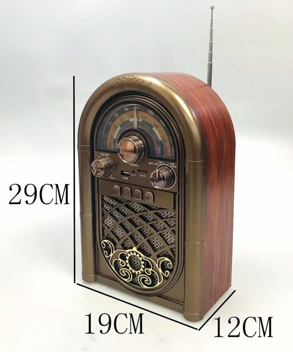 Ο ρετρό σχεδιασμός του, με ξύλινη υφή και μεταλλικές λεπτομέρειες, ταιριάζει ιδανικά σε σαλόνι, γραφείο ή υπνοδωμάτιο, λειτουργώντας τόσο ως χρηστική συσκευή όσο και ως διακοσμητικό στοιχείο που ξεχωρίζει.