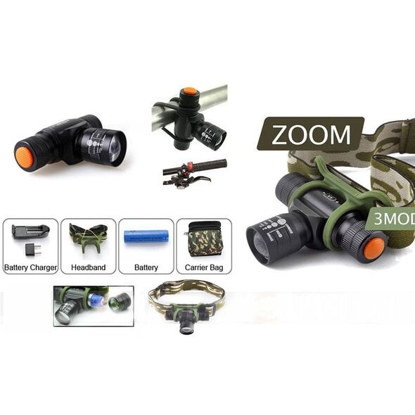 Επαναφορτιζόμενος Φακός Κεφαλής Υψηλής Ισχύος CREE LED Zoom 180 Lumens