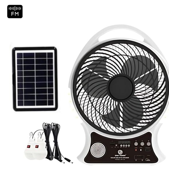 Χάρη στη δύναμη του ήλιου, μπορείτε να έχετε ανεμιστήρα ο οποίος διαθέτει ραδιόφωνο, θύρα φόρτισης usb για να κρατάτε φορτισμένες τις συσκευές σας αλλά και 2 λάμπες LED.