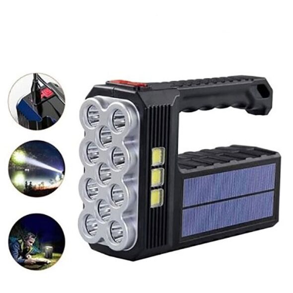 Επαναφορτιζόμενος Ηλιακός Φακός με Ηλιακό Πάνελ LED 4 Λειτουργιών με 11 LED και 3COB