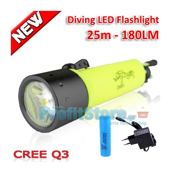 Επαναφορτιζόμενος Καταδυτικός Φακός Cree Q3 LED 180 Lumens 20m