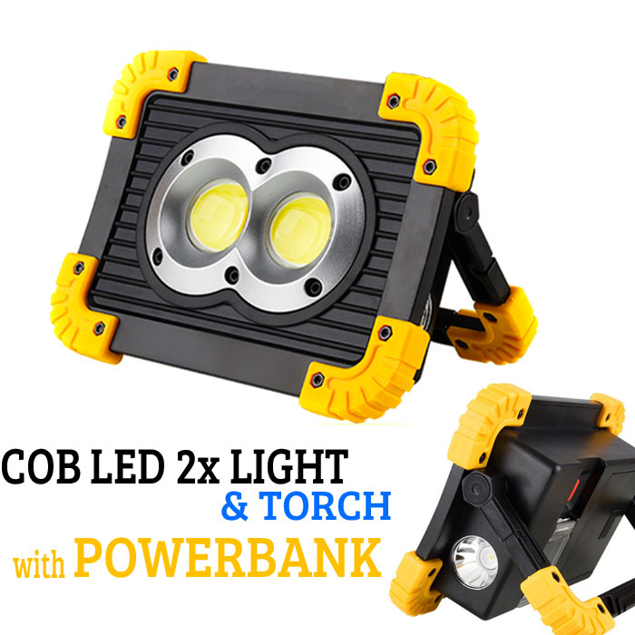 Επαναφορτιζόμενος LED Φορητός Προβολέας 20W - Φακός & Φωτιστικό Εργασίας με Powerbank - Ultra Slim COB Working Light