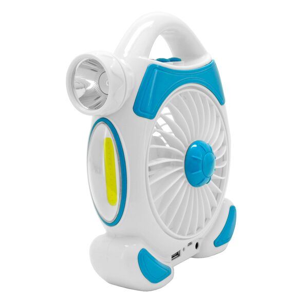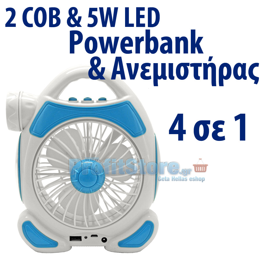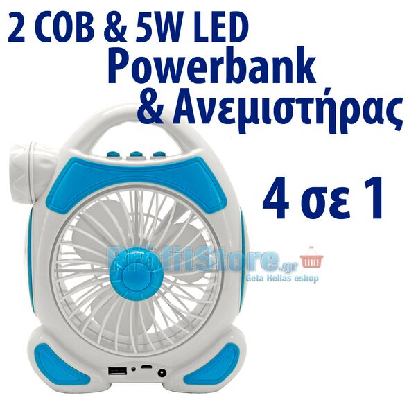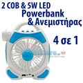 Επαναφορτιζόμενος Πολυλειτουργικός Ανεμιστήρας, Διπλός Φακός COB, LED, PowerBank, USB 4 σε 1 - Multifunctional Fan 2 COB & 5W LED
