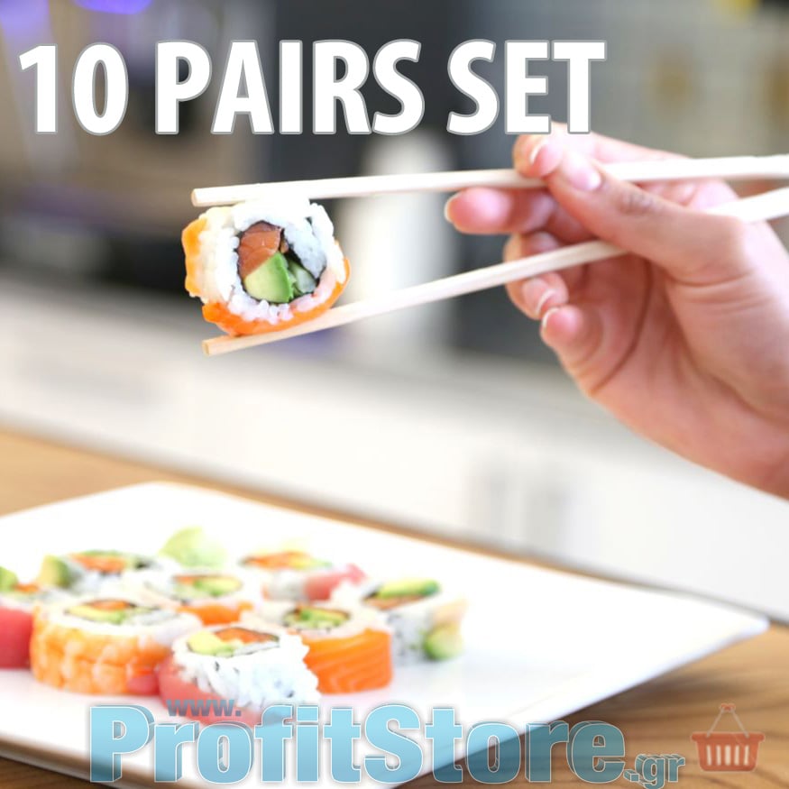 Επαναχρησιμοποιούμενα Ανοιχτόχρωμα Ξυλάκια - Τσοπστικς για Κινέζικο και Σούσι Σετ 10 pairs - Bamboo Chopstick