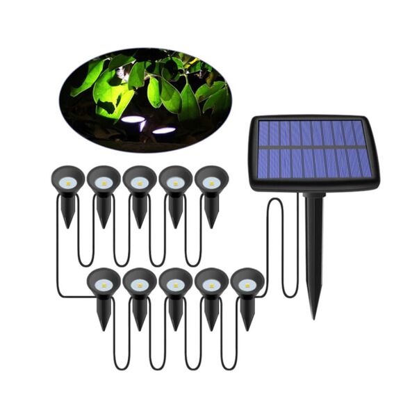 Επιδαπέδια Διακοσμητικά Ηλιακά Λαμπιόνια LED Λευκού Φωτισμού 5000Κ Αδιάβροχα με Βάση για Χώμα Μαύρα 10τμχ