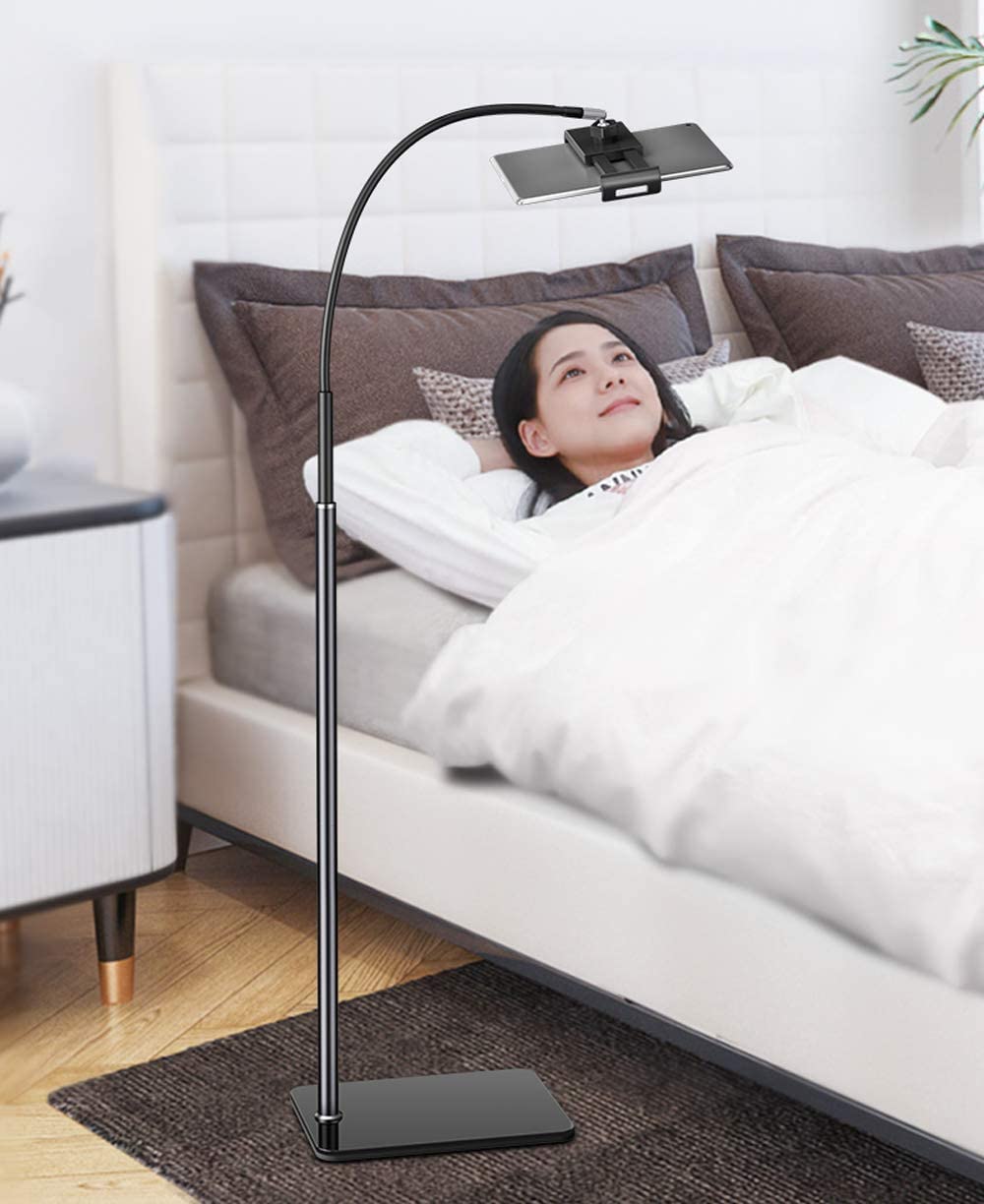 Ψηλή προσαρμοζόμενη βάση δαπέδου για κινητά και τάμπλετ, για να βλέπετε τις αγαπημένες σας σειρές, ταινίες και video, να κάνετε βιντεοκλήσεις κα, ελεύθερα κάνοντας όλες τις δουλειές σας άνετα!