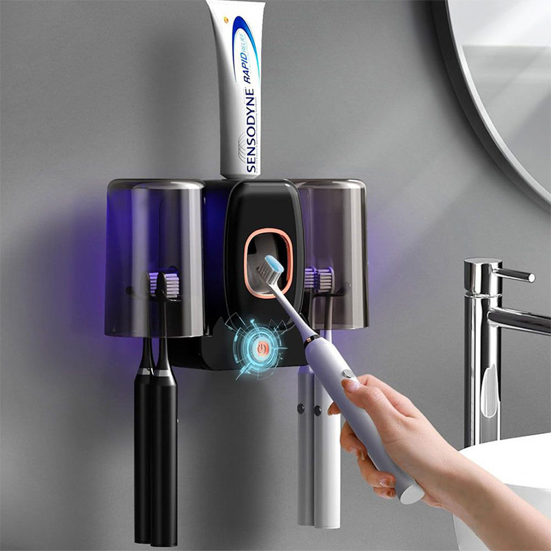 Μια πολυλειτουργική βάση που θα σας χρησιμεύσει για να οργανώσετε και να αποστειρώσετε τις οδοντόβουρτσες σας. Επίσης παρέχει έναν εύχρηστο διανομέα οδοντόκρεμας.