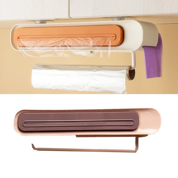 Επιτοίχια Βάση Οργάνωσης για Αλουμινόχαρτο ή Μεμβράνη, Χαρτί Κουζίνας & Θήκη για Σακούλες σε Ρολό 41x7x8cm