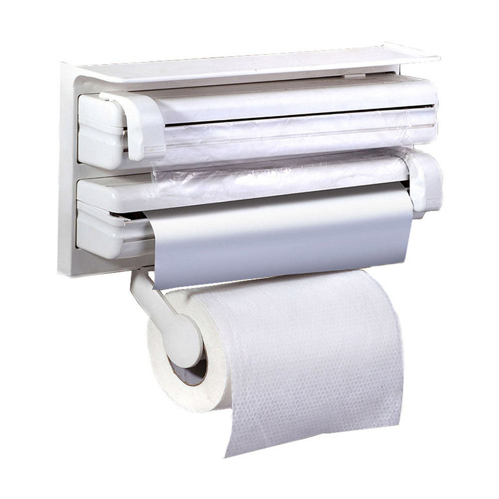 Αποσπώμενη θήκη ρολό χαρτιού κουζίνας και δύο κλειστές υποδοχές για φύλλα αλουμινίου και μεμβράνες φαγητού.
