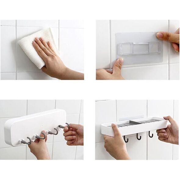 Επιτοίχιο Αυτοκόλλητο Ραφάκι για Σαπούνια Νιπτήρα Μπάνιου με 4 Γάντζους - Κρεμάστρες Πλαστικό