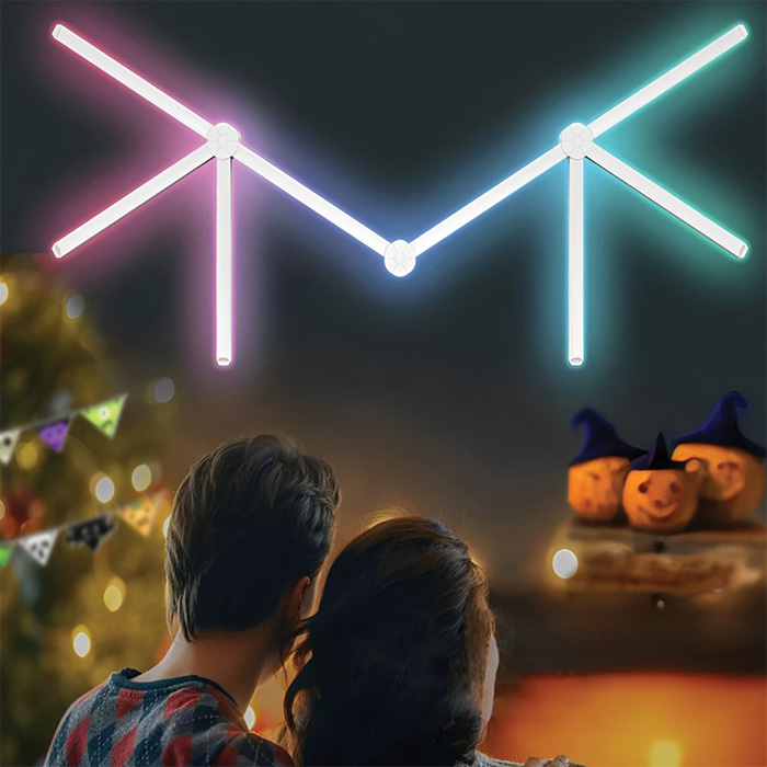 Εγκαταστήστε τη λωρίδα LED με τον τρόπο που θέλετε, συνδέστε 9 εναλλάξιμα τμήματα απλίκας RGB και 10 συνδέσμους για να δημιουργήσετε την πολύχρωμη κινούμενη σκηνή που σας αρέσει.