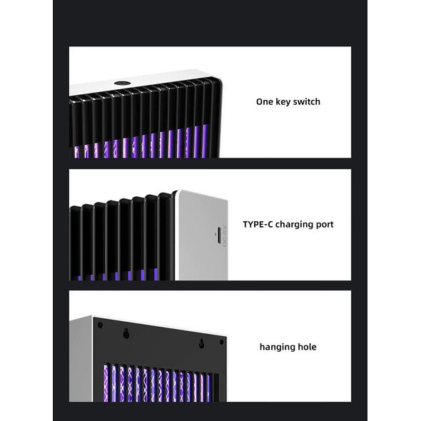 Διαθέτει 5 LED λάμπες υπεριώδους μωβ φωτισμού που ελκύει τα κουνούπια και τα εντομα σε αυτό. Όταν αυτά πλησιάσουν και μπουν στο εσωτερικό πλέγμα (στο εξωτερικό υπάρχει πλέγμα ασφαλείας), θα χτυπηθούν από ρεύμα το οποίο και θα τα εξοντώσει ακαριαία.
