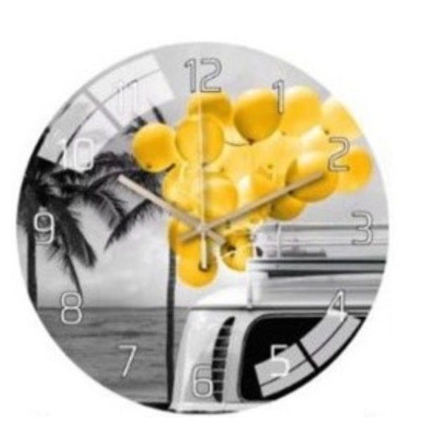 Επιτοίχιο Στρογγυλό Ρολόι με Λεπτοδείκτες- Σχέδιο Κίτρινα Μπαλόνια 30cm