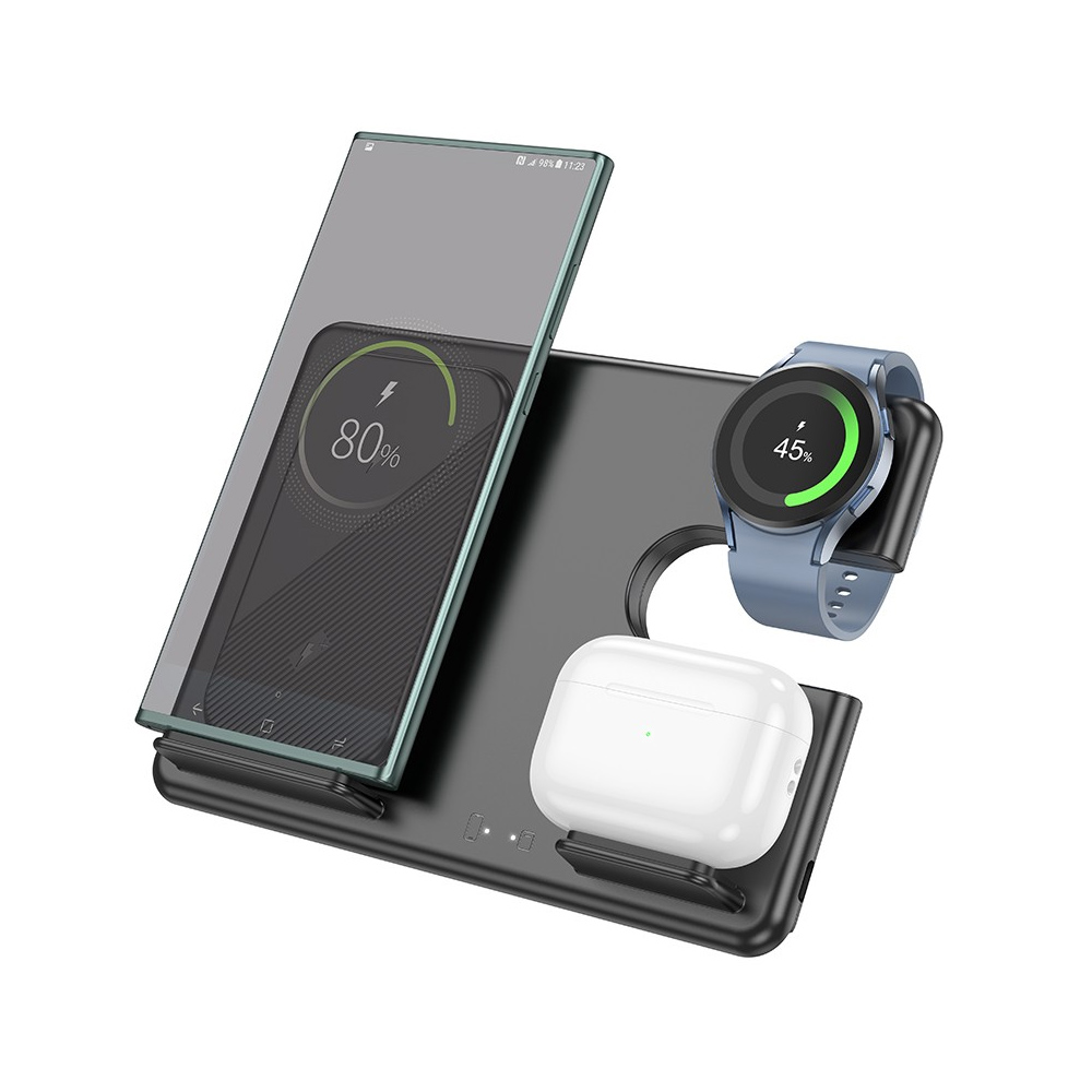 Επιτραπέζια Αναδιπλούμενη Βάση Φόρτισης 3 σε 1 3A 15W με Κάθετη Φόρτιση 3 Συσκευών και Ρυθμιζόμενο Βραχίωνα Hoco Μαύρη