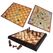 Έχει μέσα ξύλινα πιόνια για σκάκι και για τα άλλα δύο παιχνίδια.