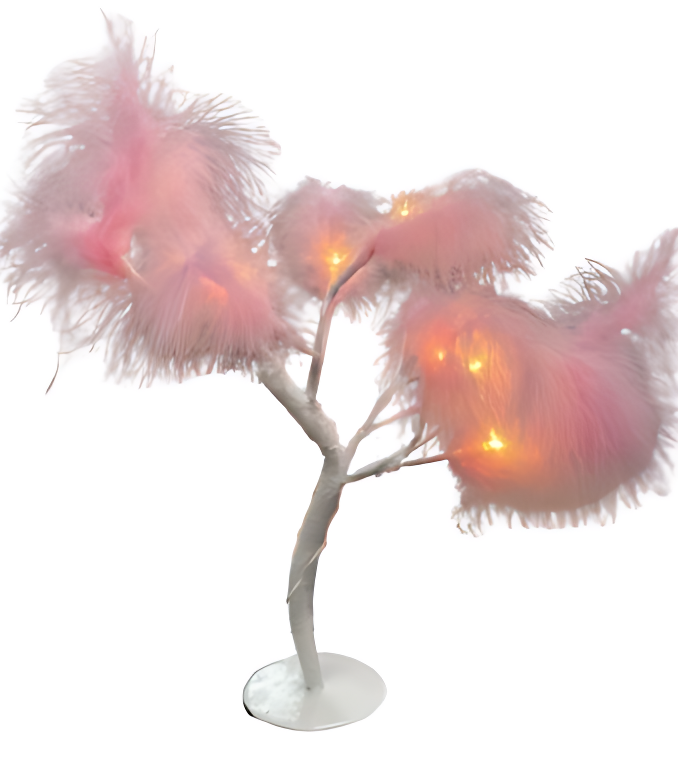 Το επιτραπέζιο διακοσμητικό δεντράκι με LED και ροζ φτερά προσφέρει μια ρομαντική και εκλεπτυσμένη πινελιά στη διακόσμηση του χώρου σας.