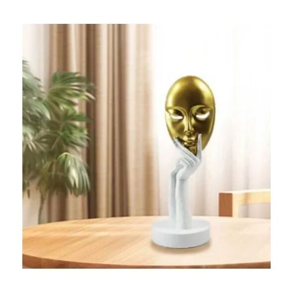 Αναβαθμίστε τη διακόσμηση του χώρου σας με αυτό το επιτραπέζιο διακοσμητικό "Μάσκα" από ρητίνη σε λευκό και χρυσό χρώμα, διαστάσεων 23x7x15cm.