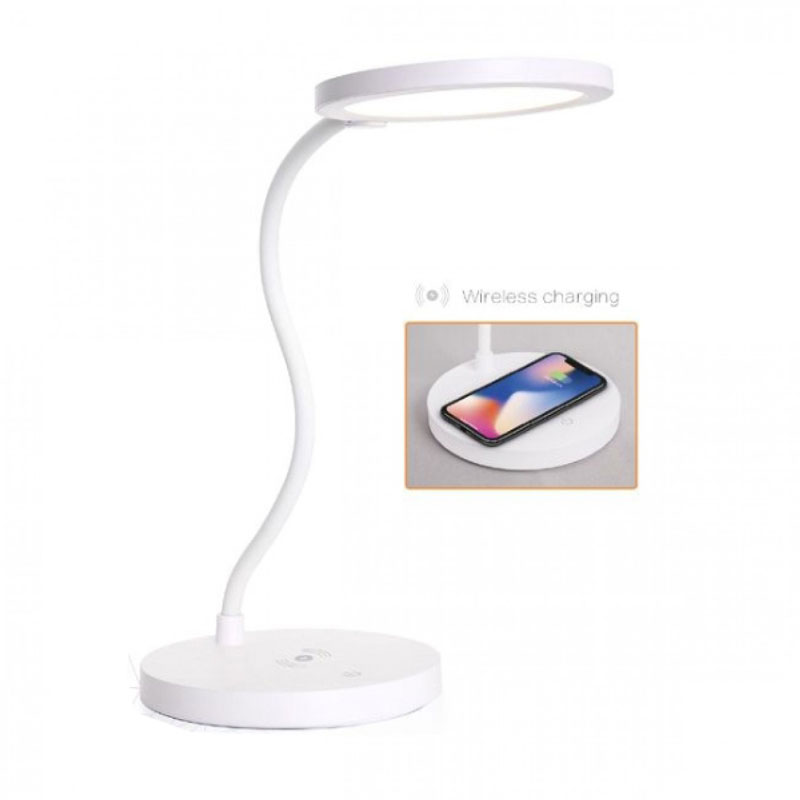 Επιτραπέζιο Φωτιστικό Γραφείου Led Ring με Βάση Ασύρματης Φόρτισης 4.5w Λευκό