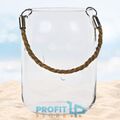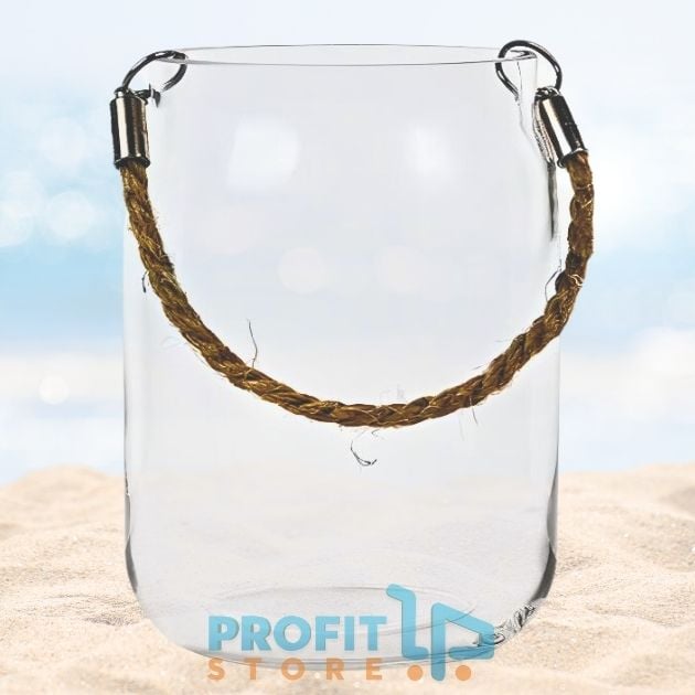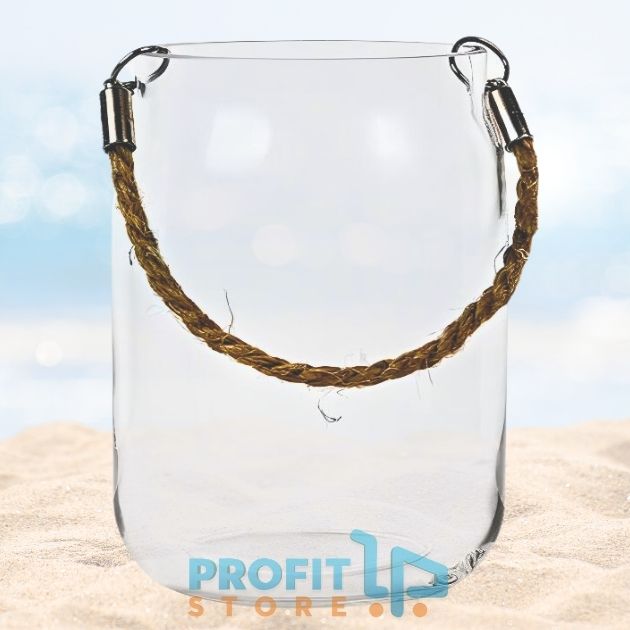 Το γυαλί επιτρέπει την απαλή λάμψη του κεριού, δημιουργώντας μια ζεστή και φιλόξενη ατμόσφαιρα στο σπίτι σας ενώ η λαβή από σχοινί προσθέτει μια ρουστίκ πινελιά, καθιστώντας το ιδανικό για όσους αγαπούν την καλοκαιρινή διακόσμηση.