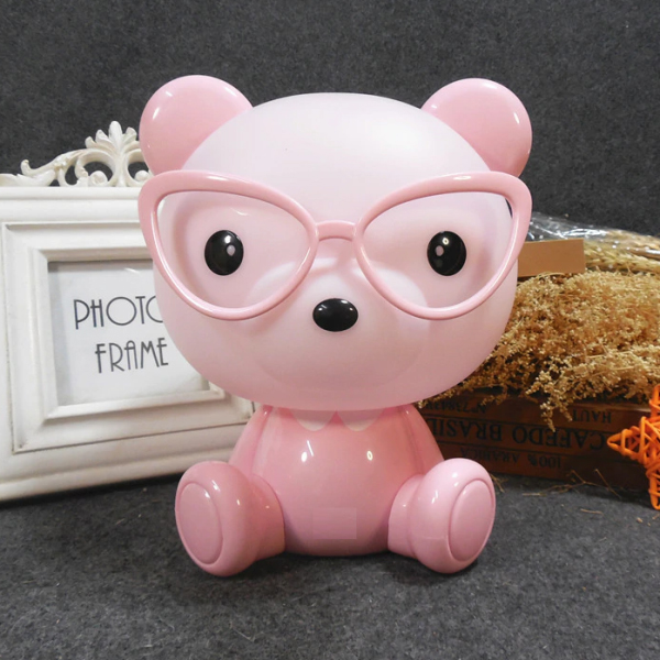 Επιτραπέζιο Παιδικό Φωτιστικό - Πορτατίφ - Φωτάκι Νυκτός Αρκουδάκι με Γυαλιά Ροζ LED