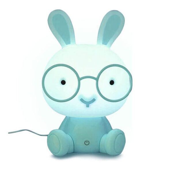 Επιτραπέζιο Παιδικό Φωτιστικό - Πορτατίφ - Φωτάκι Νυκτός Λαγουδάκι με Γυαλιά Μπλε LED